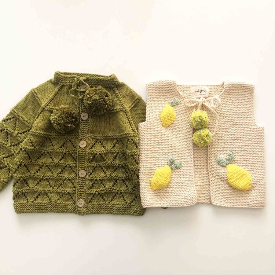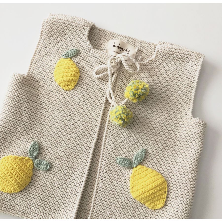 • Classic hand knitted Baby Vest is designed with a cute lemons crochet embroidery detail on the front.
