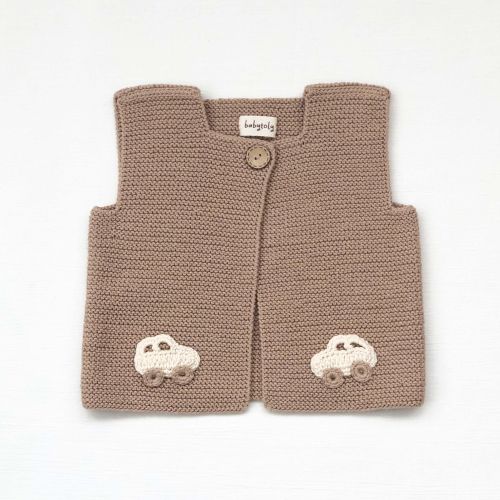 • Classic, gender neutral hand knitted Baby Vest is designed with a cute car embroidery detail on the front.