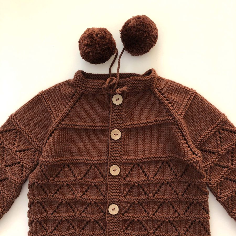 • Helena Cardigan has a classic pattern scattered all over, front and back with its gender neutral design