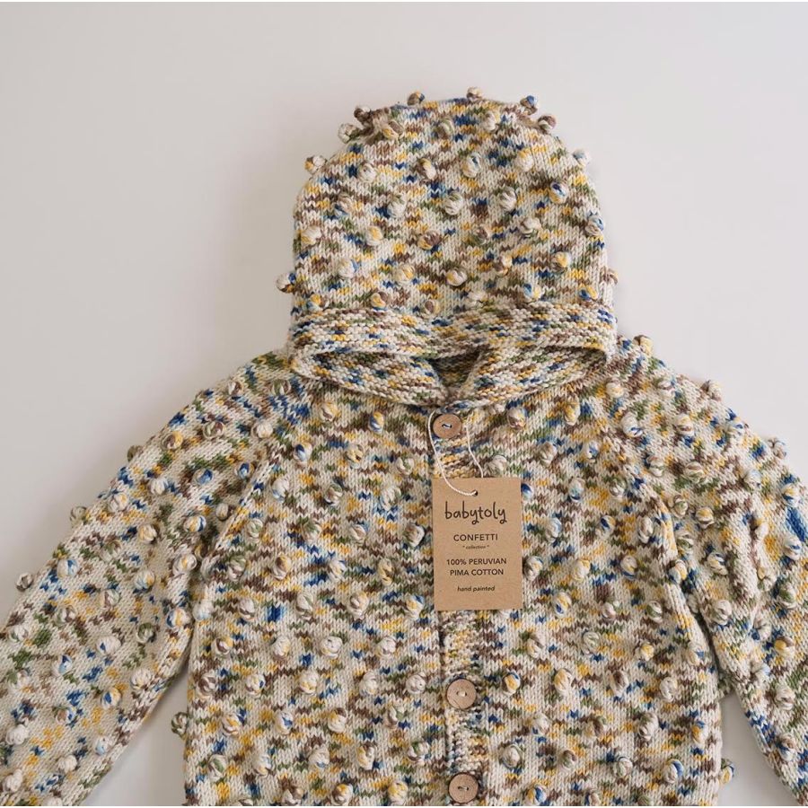 • Popcorn Jackets in this gorgeous hoodie style have the sweetest and most loved hand knitted popcorn stitches scattered all over, front and back